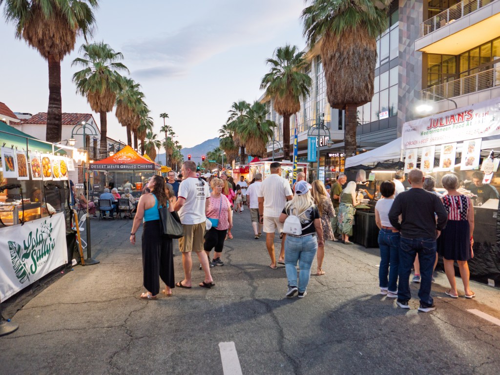 Every Thursday evening Palm Springs hosts a “Village Festival” on N. Palm Canyon Drive. Starting in October their hours are 6p – 10p.