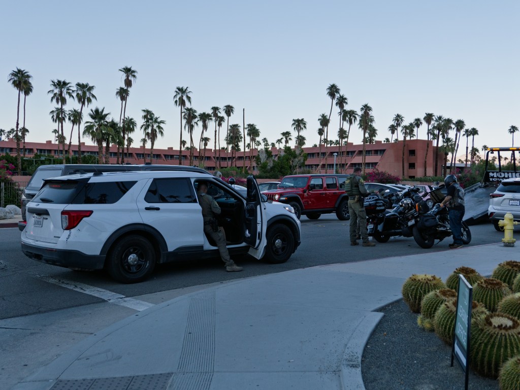 The Mongols Motorcycle Club has returned to Palm Springs for their annual meeting. The police presence was higher than normal with police officers observed from Palm Springs Police Department, Cathedral City Police Department, Riverside County Sheriff’s Department, and the California Highway Patrol. There was police activity at the corner of Arenas and Calle Encilia and a circling police helicopter.
